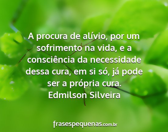 A procura de alívio, por um sofrimento na vida, e a consciência da necessidade dessa cura, em si só, já pode ser a própria cura.Edmilson Silveira