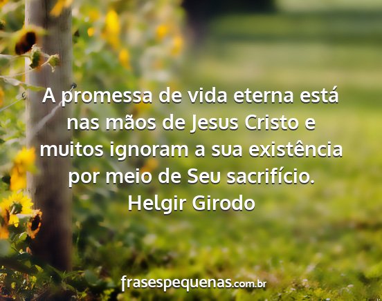 A promessa de vida eterna está nas mãos de Jesus Cristo e muitos ignoram a sua existência por meio de Seu sacrifício.Helgir Girodo