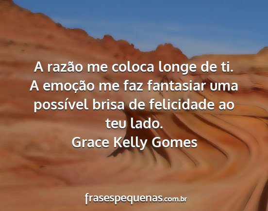 A razão me coloca longe de ti. A emoção me faz fantasiar uma possível brisa de felicidade ao teu lado.Grace Kelly Gomes