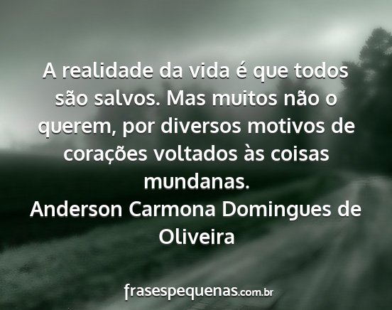 A realidade da vida é que todos são salvos. Mas muitos não o querem, por diversos motivos de corações voltados às coisas mundanas.Anderson Carmona Domingues de Oliveira