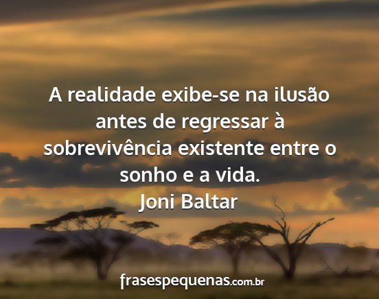 A realidade exibe-se na ilusão antes de regressar à sobrevivência existente entre o sonho e a vida.Joni Baltar