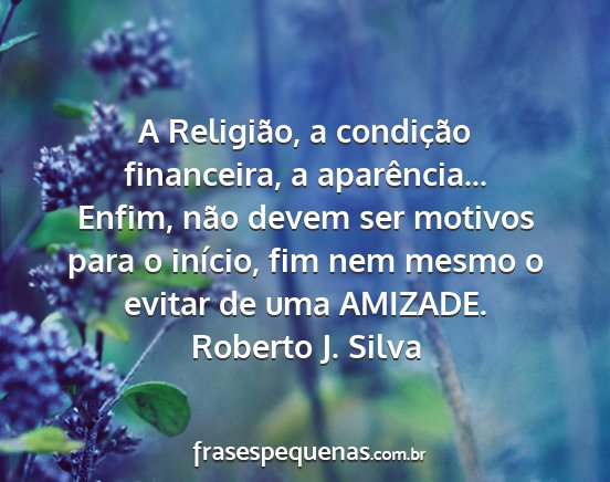 A Religião, a condição financeira, a aparência... Enfim, não devem ser motivos para o início, fim nem mesmo o evitar de uma AMIZADE.Roberto J. Silva