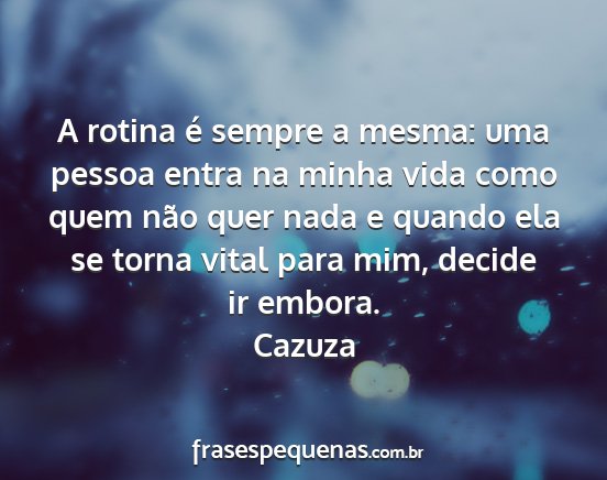 A rotina é sempre a mesma: uma pessoa entra na minha vida como quem não quer nada e quando ela se torna vital para mim, decide ir embora.Cazuza