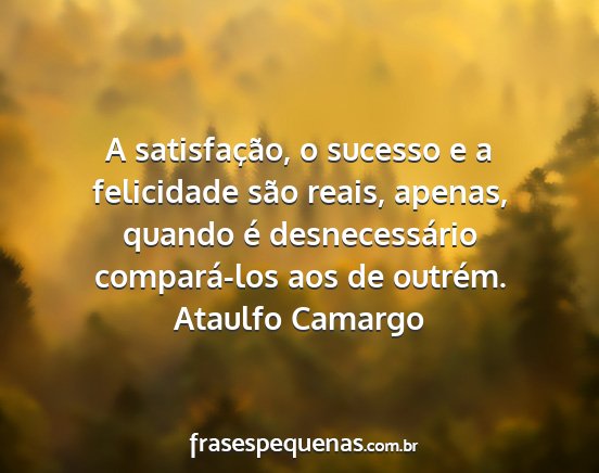 A satisfação, o sucesso e a felicidade são reais, apenas, quando é desnecessário compará-los aos de outrém.Ataulfo Camargo