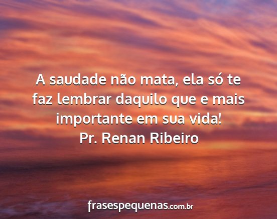 A saudade não mata, ela só te faz lembrar daquilo que e mais importante em sua vida!Pr. Renan Ribeiro