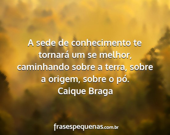 A sede de conhecimento te tornará um se melhor, caminhando sobre a terra, sobre a origem, sobre o pó.Caique Braga
