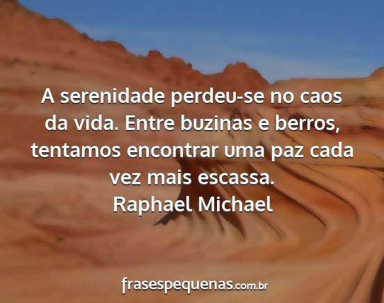 A serenidade perdeu-se no caos da vida. Entre buzinas e berros, tentamos encontrar uma paz cada vez mais escassa.Raphael Michael