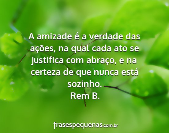 A amizade é a verdade das ações, na qual cada ato se justifica com abraço, e na certeza de que nunca está sozinho.Rem B.