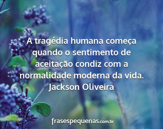 A tragédia humana começa quando o sentimento de aceitação condiz com a normalidade moderna da vida.Jackson Oliveira