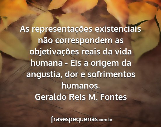 As representações existenciais não correspondem as objetivações reais da vida humana - Eis a origem da angustia, dor e sofrimentos humanos.Geraldo Reis M. Fontes