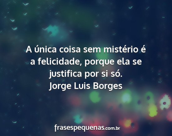 A única coisa sem mistério é a felicidade, porque ela se justifica por si só.