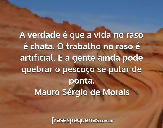 A verdade é que a vida no raso é chata. O trabalho no raso é artificial. E a gente ainda pode quebrar o pescoço se pular de ponta.Mauro Sérgio de Morais