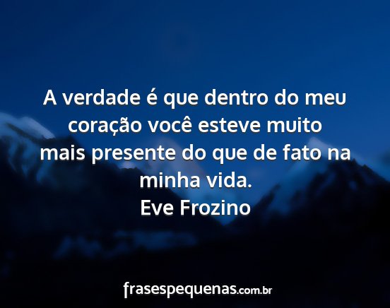 A verdade é que dentro do meu coração você esteve muito mais presente do que de fato na minha vida.Eve Frozino