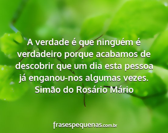 A verdade é que ninguém é verdadeiro porque acabamos de descobrir que um dia esta pessoa já enganou-nos algumas vezes.Simão do Rosário Mário