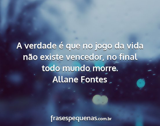 A verdade é que no jogo da vida não existe vencedor, no final todo mundo morre.