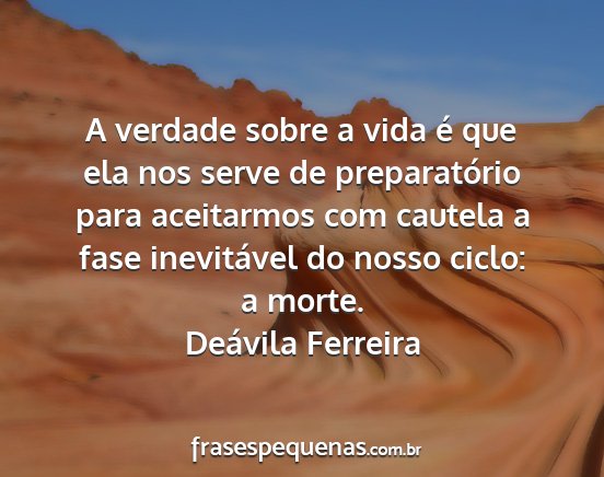 A verdade sobre a vida é que ela nos serve de preparatório para aceitarmos com cautela a fase inevitável do nosso ciclo: a morte.Deávila Ferreira