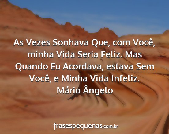 As Vezes Sonhava Que, com Você, minha Vida Seria Feliz. Mas Quando Eu Acordava, estava Sem Você, e Minha Vida Infeliz.Mário Ângelo