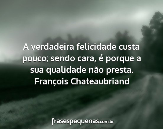 A verdadeira felicidade custa pouco; sendo cara, é porque a sua qualidade não presta.François Chateaubriand