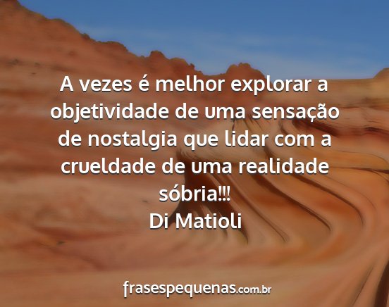 A vezes é melhor explorar a objetividade de uma sensação de nostalgia que lidar com a crueldade de uma realidade sóbria!!!Di Matioli