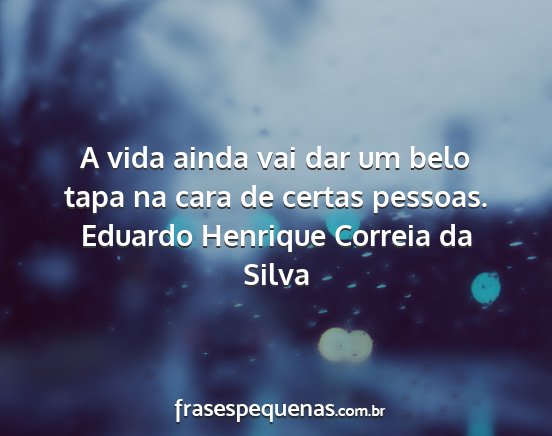A vida ainda vai dar um belo tapa na cara de certas pessoas.