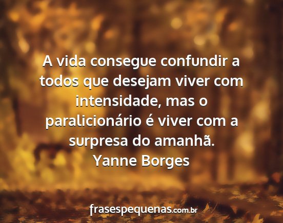 A vida consegue confundir a todos que desejam viver com intensidade, mas o paralicionário é viver com a surpresa do amanhã.Yanne Borges