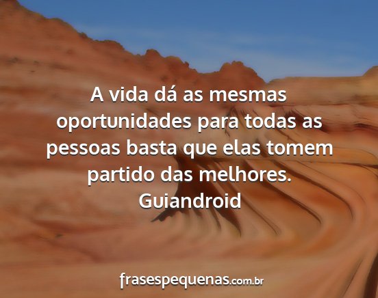 A vida dá as mesmas oportunidades para todas as pessoas basta que elas tomem partido das melhores.Guiandroid