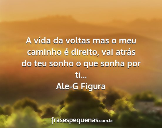 A vida da voltas mas o meu caminho é direito, vai atrás do teu sonho o que sonha por ti...Ale-G Figura