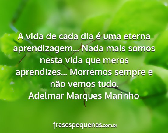 A vida de cada dia é uma eterna aprendizagem... Nada mais somos nesta vida que meros aprendizes... Morremos sempre e não vemos tudo.Adelmar Marques Marinho