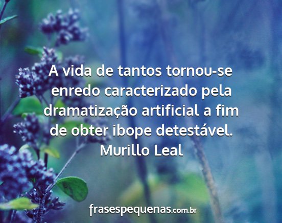 A vida de tantos tornou-se enredo caracterizado pela dramatização artificial a fim de obter ibope detestável.Murillo Leal