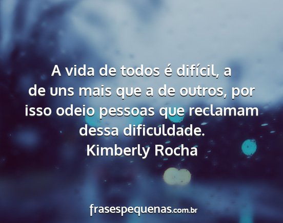 A vida de todos é difícil, a de uns mais que a de outros, por isso odeio pessoas que reclamam dessa dificuldade.Kimberly Rocha