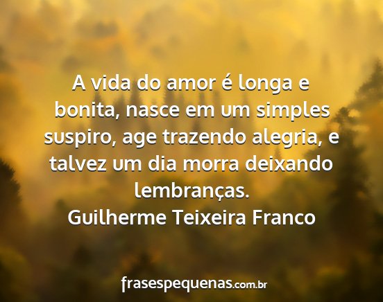 A vida do amor é longa e bonita, nasce em um simples suspiro, age trazendo alegria, e talvez um dia morra deixando lembranças.Guilherme Teixeira Franco