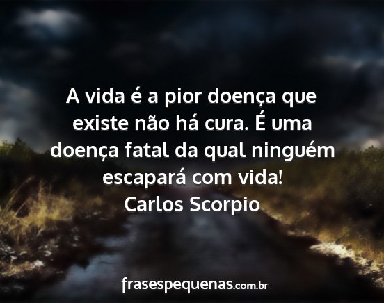 A vida é a pior doença que existe não há cura. É uma doença fatal da qual ninguém escapará com vida!Carlos Scorpio