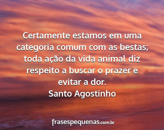 Certamente estamos em uma categoria comum com as bestas; toda ação da vida animal diz respeito a buscar o prazer e evitar a dor.Santo Agostinho