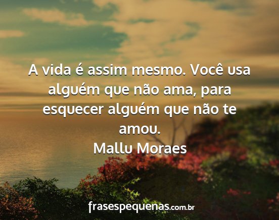 A vida é assim mesmo. Você usa alguém que não ama, para esquecer alguém que não te amou.