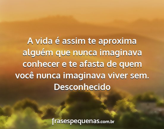 A vida é assim te aproxima alguém que nunca imaginava conhecer e te afasta de quem você nunca imaginava viver sem.Desconhecido