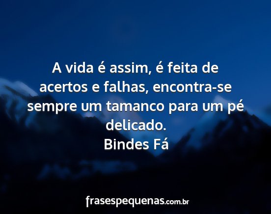 A vida é assim, é feita de acertos e falhas, encontra-se sempre um tamanco para um pé delicado.Bindes Fá