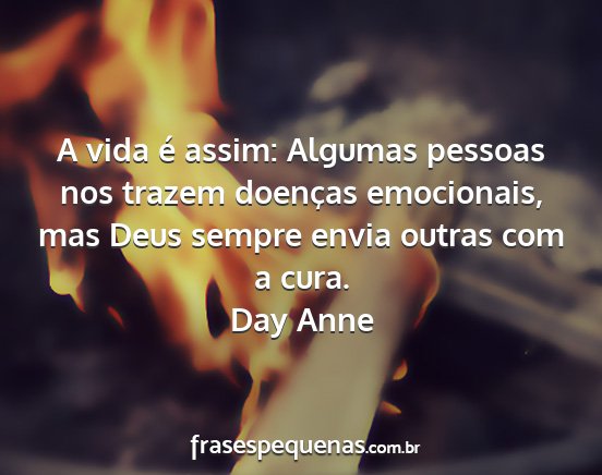 A vida é assim: Algumas pessoas nos trazem doenças emocionais, mas Deus sempre envia outras com a cura.Day Anne