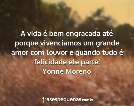 A vida é bem engraçada até porque vivenciamos um grande amor com louvor e quando tudo é felicidade ele parte!Yonne Moreno