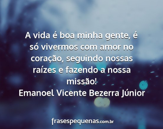 A vida é boa minha gente, é só vivermos com amor no coração, seguindo nossas raízes e fazendo a nossa missão!Emanoel Vicente Bezerra Júnior