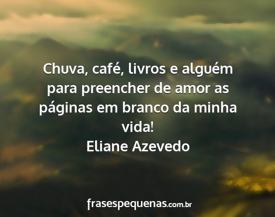 Chuva, café, livros e alguém para preencher de amor as páginas em branco da minha vida!Eliane Azevedo