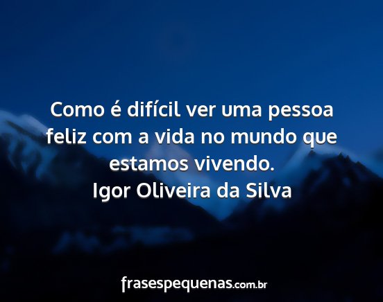 Como é difícil ver uma pessoa feliz com a vida no mundo que estamos vivendo.