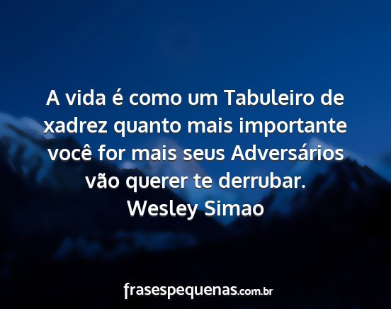A vida é como um Tabuleiro de xadrez quanto mais importante você for mais seus Adversários vão querer te derrubar.Wesley Simao