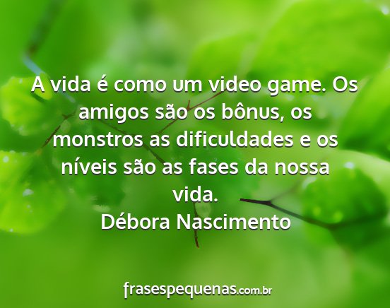 A vida é como um video game. Os amigos são os bônus, os monstros as dificuldades e os níveis são as fases da nossa vida.Débora Nascimento