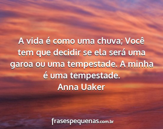 A vida é como uma chuva; Você tem que decidir se ela será uma garoa ou uma tempestade. A minha é uma tempestade.Anna Uaker