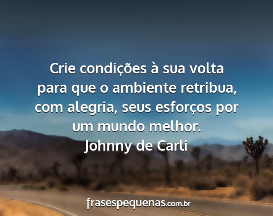Crie condições à sua volta para que o ambiente retribua, com alegria, seus esforços por um mundo melhor.Johnny de Carli