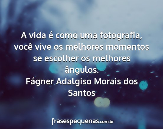 A vida é como uma fotografia, você vive os melhores momentos se escolher os melhores ângulos.Fágner Adalgiso Morais dos Santos