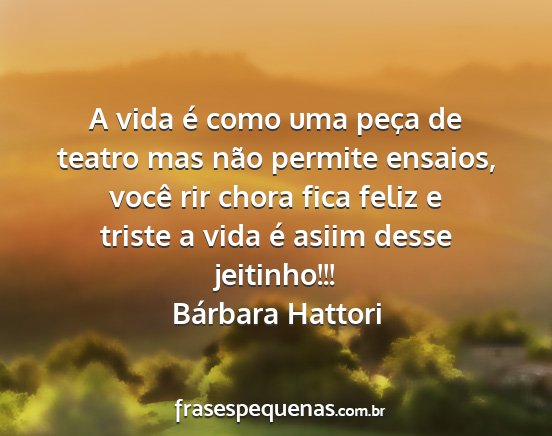 A vida é como uma peça de teatro mas não permite ensaios, você rir chora fica feliz e triste a vida é asiim desse jeitinho!!!Bárbara Hattori
