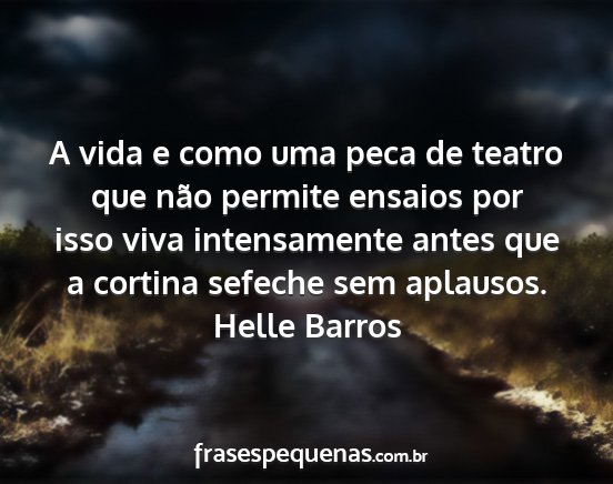 A vida e como uma peca de teatro que não permite ensaios por isso viva intensamente antes que a cortina sefeche sem aplausos.Helle Barros