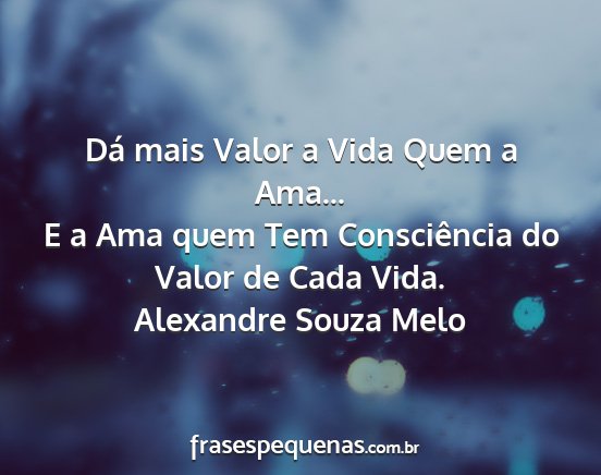 E a Ama quem Tem Consciência do Valor de Cada Vida.Alexandre Souza Melo