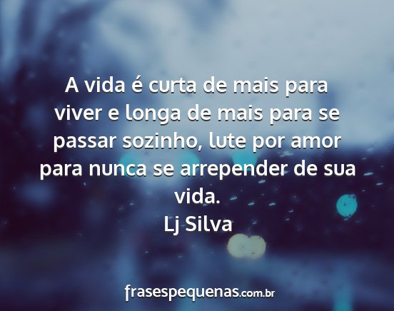 A vida é curta de mais para viver e longa de mais para se passar sozinho, lute por amor para nunca se arrepender de sua vida.Lj Silva